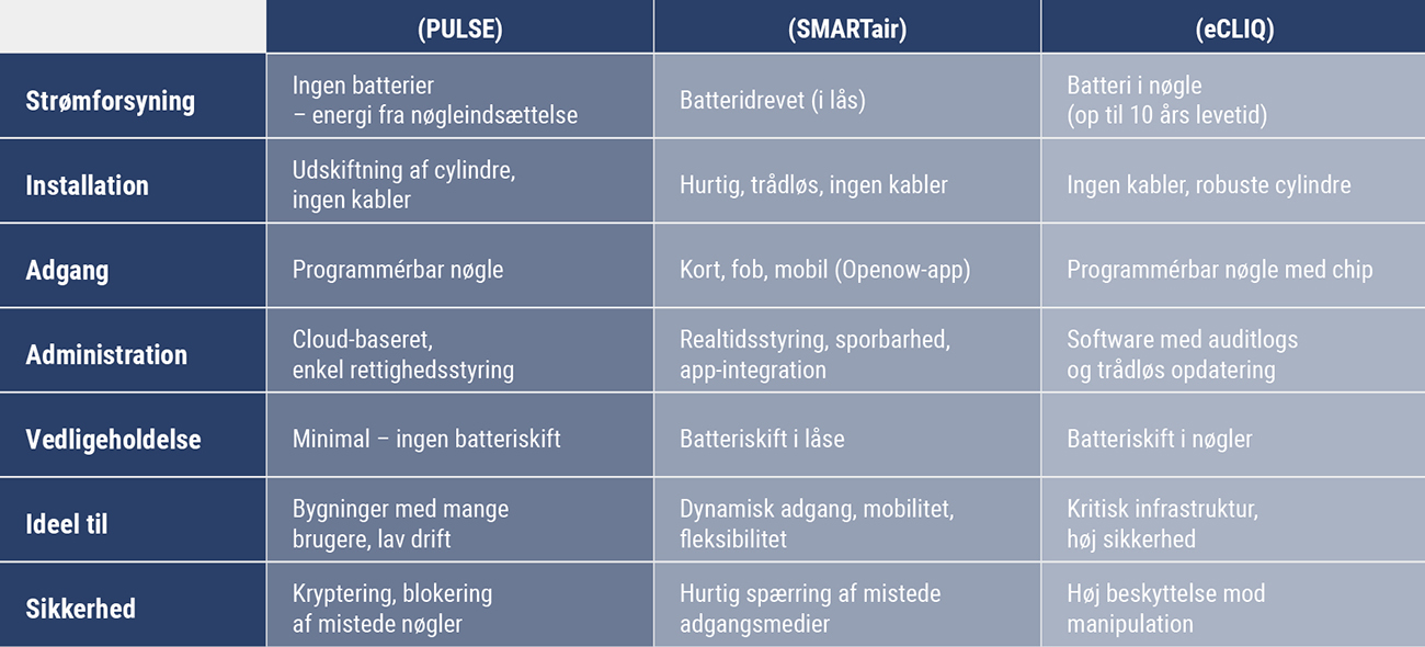 Sammenhænge og forskelle på eCLIQ er PULSE og SMARTair